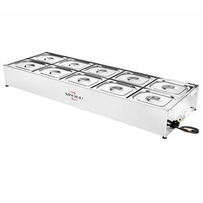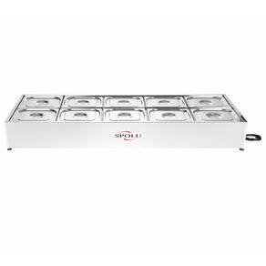 A função do Buffet térmico de bancada SPOLU é manter os alimentos servidos em suas cubas quentes enquanto em exposição. Possui cubas fabricadas em aço inox 201, tanque, tampas e moldura externa em aço inox 430. Sua resistência blindada é confeccionada em aço inox e controlada por um termostato com escala de 30ºC a 120ºC. Possui uma lâmpada piloto em seu painel indicando a função liga/desliga do termostato. SPOLU - CONCEITO DE QUALIDADE.