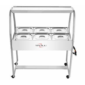 A função do Buffet térmico Infantil SPOLU é manter os alimentos servidos em suas cubas quentes enquanto em exposição. Possui cubas fabricadas em aço inox 201, tanque, tampas e moldura externa em aço inox 430 e estrutura de sustentação tubular. Sua resistência blindada é confeccionada em aço inox e controlada por um termostato com escala de 30ºC a 120ºC. Possui uma lâmpada piloto em seu painel indicando a função liga/desliga do termostato. Para facilitar a movimentação e o deslocamento a estrutura tubular é dotada de rodízios giratórios. Produtos SPOLU - CONCEITO DE QUALIDADE.