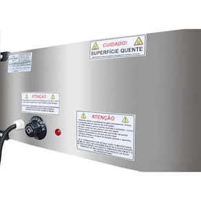Esse Buffet conta com resistência blindada em aço inox controlada por um termostato com escala de 30C a 120C que garante a temperatura ideal para cada prato.
