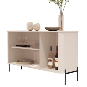 O buffet tucupí tem os cantos arredondados exclusivos da linha, base e tampo em MDF de 1,5cm, porta em MDF de 1,5cm com dobradiças e pés e puxadores em metal com variações de cores com design exclusivo. Acabamento da Porta: Pintura UV Acabamento da Prateleira: Pintura UV Acabamento dos Pés: Pintura Ambiente Principal: Sala de Jantar Complexidade da Montagem: Alta: deve ser montado por um montador especializado Cor: Off White/Preto Cor do Produto: Off White/Preto Cor Flex: não Cor Interna: OffWhite Escala de Brilho: Semi-Brilho Escala de Brilho da Porta: Semi-Brilho Escala de Brilho da Prateleira: Semi-Brilho Itens Inclusos: 1 Buffet + Kit Ferragens + Manual de Montagem. Linha ou Coleção: Linha 2025 Manual de Montagem e Instalação: https://cdn2.madeiramadeira.com.br/atributo/jb-bechara/2721409-5404-17407667263568.pdf Marca: JB Bechara Material da Porta: MDF Material da Prateleira: MDF Material do Puxador da Porta: Metal Material dos Pés: Metal Material Principal: MDF Montagem Flex: não Necessita Montagem: Sim Origem do Produto: Nacional Pés Reguláveis: Não Peso: 31,4 kg Peso Máximo por Prateleira: 5 kg Possui Adega: Não Possui Espelho: Não Possui Nicho: 03 Possui Pés: 04 Possui Portas: 03 Possui Rodízio: Não Recomendações de Uso, Manutenção e Limpeza: Na remoção da poeira utilize flanela limpa e levemente umedecida. Não exponha à luz solar e locais úmidos. Não encoste o móvel na parede para evitar transmissão de umidade. Sapatas Niveladoras: Não Sistema de Montagem: O produto será entregue desmontado, acompanhado do manual de montagem. Não oferecemos serviço de montagem. A montagem e instalação é por conta do cliente. Recomendamos a contratação de um profissional. Não nos responsabilizamos por danos decorrentes a e Suporta Até (kg): 20 kg Tipo de Dobradiça/Corrediça da Porta: Metálica Tipo de Porta: Bater Tipo de Puxador da Porta: Externo