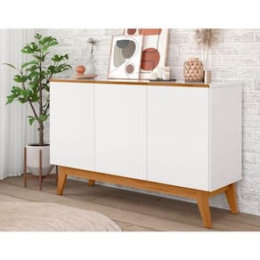 Pintura Semi Brilho, possui 3 portas de correr com detalhe central em fibra sintética, tampo de 18mm em MDF.