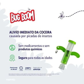 O inovador Bug Boom Tira Picada atua promovendo o alívio imediato da coceira e do desconforto causado por picadas de insetos.