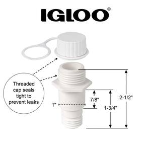 - Cabe em coolers Igloo com um orifício de drenagem de aproximadamente 2,5 cm de diâmetro externo e espessura de parede térmica de aproximadamente 3,5 cm.
