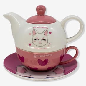 Depois de um dia agitado, vivendo aventuras você não conseguiu dar uma pausa para tomar aquele chazinho quentinho A gente te ajuda Com esse bule 2 em 1 a hora do chá fica muito mais divertida O bule conta com 410ml para você preparar o seu chá preferido, e a caneca possui 260ml para você aproveitar o sabor de cada gole O produto é importado, feito em cerâmica, possui detalhes incríveis que vão fazer você se apaixonar ainda mais pela hora do chá Se você quer adicionar um pouco de diversão e magia no seu chá, a gente te ajuda Com esse Bule 2 em 1, a hora do chá fica muito mais completa O bule conta com 410ml e a caneca possui 260ml de capacidade, com uma alça ergonômica e um pires para você apoiar sua caneca Não importa se é no café da tarde ou da manhã, esse kit te acompanha em todas as suas aventurasEspecificação:Bule:Altura: 13cm Comprimento: 7,5cm Largura: 15,5cm Capacidade: 410ml Material: Cerâmica Caneca:Altura: 5cm Largura: 12,5cm Comprimento: 10cm Capacidade: 260ml Material: Cerâmica Cuidados e recomendações de uso:Lavar com água, esponja macia e detergente neutro.Não vai ao micro-ondas, nem a lava-louças.Não utilizar químicos e abrasivos.Choques ou quedas podem trincar ou quebrar o produto, pois trata-se de um produto de cerâmica.