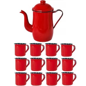 Garantia: 90 Dias / Peso: 800g / Cor: Vermelho / Conteúdo: 1 Bule Esmaltado 1,25L e 12 Xícaras 70ml / Ref: 220E054X12 Dimensões Bule: 20cm (A) x 10cm (D) Dimensões Xícara: 5cm (A) x 5cm (D) Cuidados: Não lavar com materiais abrasivos Capacidade Bule: 1,25L / Xícaras: 70ml
