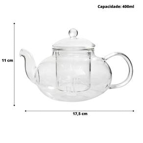 Informações Técnicas: Composição: Vidro Borossilicato. Largura do bule da alça até o bico: 17,5cm. Altura com tampa: 11cm. Capacidade: 400ml. Peso: 182 gramas.
