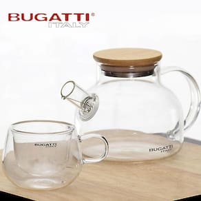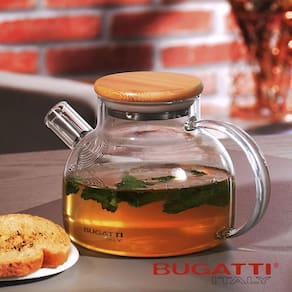O Bule de Vidro com Coador de Bico em Aço Inox e Tampa de Bambu Anti-bacteriano 500ml da Bugatti é exclusivo, singular e elegante.