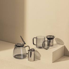 Bule para Chá 1L em Vidro e Aço Inox com Infusor Fumê Oxford - Itens Inclusos