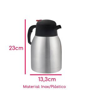 - Capacidade: 1 litro. - Material Externo: Inox. - Material Interno: Inox. - Altura: 23cm - Diâmetro da base: 13,3cm - Conteúdo: 01 Garrafa.