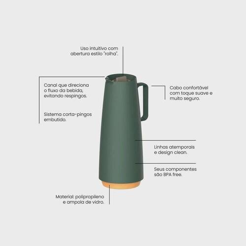 - Para levar praticidade e beleza para seu dia, precisa contar com o bule térmico Tramontina Exata em plástico verde com ampola de vidro 1 litro. Ele é ideal para colocar suas bebidas preferidas, deixando o momento de saboreá-las ainda melhor, pois mantém sua temperatura ideal por muito mais tempo, já que conta com ampola especial de vidro.