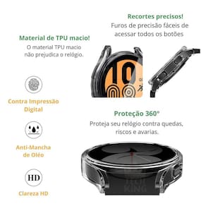 Bumper de silicone tpu 360 para galaxy watch 4 44mm r870 Cor: prata Qualidade e compra garantidaAtendimento qualificadoEnviamos seu pedido em até 1 dia útil após confirmação do pagamento Anúncio referente apenas ao acessórioRelógio não incluso Proteção 360ºA capa possui proteção tanto no corpo, quanto na tela. Proteção contra arranhões e impactos:A capa de silicone envolve a parte externa do relógio, proporcionando uma camada adicional de proteção contra arranhões e danos leves. Isso ajuda a manter a aparência do relógio em bom estado. Material durável e flexível:O silicone é conhecido por sua durabilidade e flexibilidade, o que significa que a capa pode resistir ao desgaste diário e se ajusta perfeitamente ao relógio. Design leve e fino:A capa de silicone é leve e fina, adicionando proteção extra sem adicionar volume ou peso significativo ao relógio. Variedade de cores e estilos:As capas de silicone estão disponíveis em uma variedade de cores diferentes, permitindo que você escolha uma opção que combine com seu gosto pessoal ou ocasião específica. Acesso fácil a todas as funcionalidades: A capa de silicone é projetada para não obstruir os botões, a tela sensível ao toque e outras funcionalidades, permitindo um acesso completo e fácil a todas as suas funções. Como comprar mais de 1 unidadeR: selecione o produto escolhido e adicione ao carrinho, depois escolha o próximo item e após isso adicione ao carrinho novamente e basta finalizar a compra direto do carrinho. Dúvidas após sua compra Marca: Techking