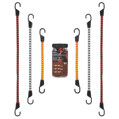 Keeper — Cordão elástico plano variado em , pacote com 6 — 18", 24" e 32"