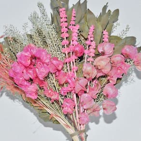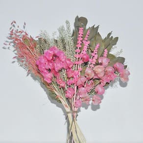 Todos os nossos arranjos e buquês são criados com flores naturais desidratadas artesanalmente. Por ser um processo manual, isso garante que cada arranjo seja único em sua composição.