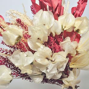 Todos os nossos arranjos e buquês são criados com flores naturais desidratadas artesanalmente. Por ser um processo manual, isso garante que cada arranjo seja único em sua composição.