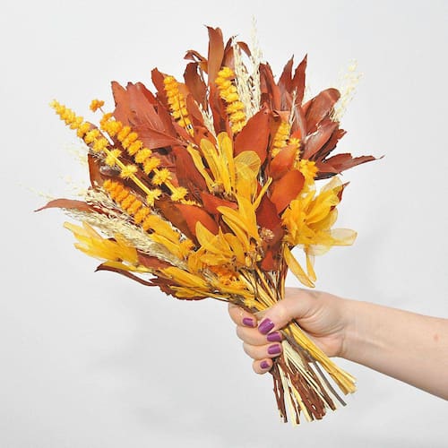 Todos os nossos arranjos e buquês são criados com flores naturais desidratadas artesanalmente. Por ser um processo manual, isso garante que cada arranjo seja único em sua composição.