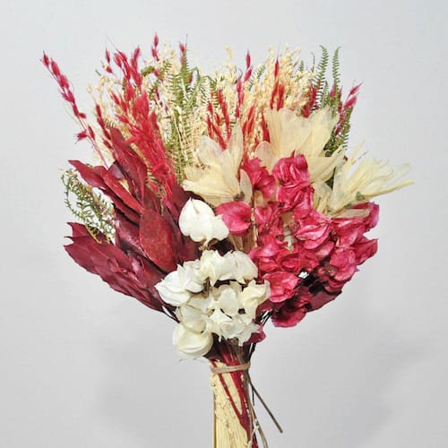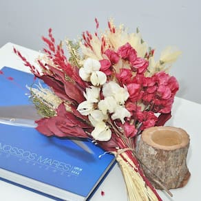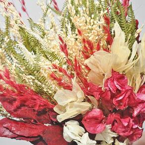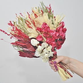 Todos os nossos arranjos e buquês são criados com flores naturais desidratadas artesanalmente. Por ser um processo manual, isso garante que cada arranjo seja único em sua composição.