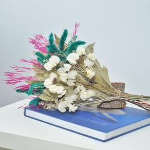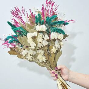 Todos os nossos arranjos e buquês são criados com flores naturais desidratadas artesanalmente. Por ser um processo manual, isso garante que cada arranjo seja único em sua composição.