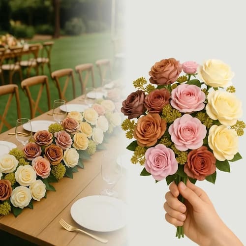 Buque De Rosas Artificiais 7 Flores Decoração Vermelho