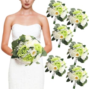 Ninguém será capaz de dizer que esses buquês de casamento não são flores reais. Elas ficarão muito bonitas para damas de honra em casamentos ao ar livre ou em ambientes fechados. Estes buquês de damas de honra são perfeitos para damas de honra ou para colocar em uma mesa de decoração em uma jarra. Estes buquês de damas de honra também podem ser colocados em um vaso ou colocados em uma mesa como uma maneira fácil de decorar um espaço. Estes buquês serão as lembranças perfeitas para um dia inesquecível. Estes buquês de casamento de 28 cm serão ótimos para casamentos - bem fotografados nas fotos. Estes buquês de casamento de 28 cm serão perfeitos para damas de honra ou para colocar uma mesa de decoração em uma jarra. Estes buquês de casamento de 28 cm são em uma bela cor e serão perfeitos para minha dama de honra e dama de honor. Estes buquês de casamento não são supergrandes e, são grandes o suficiente para damas de honra usarem. Elas são muito bonitas e muito leves. Estes buquês de casamento são muito bonitos e o tamanho é perfeito. Você pode afofar as flores e dar uma aparência agradável e natural. Estes buquês de casamento são perfeitos para damas de honra. Não muito pequeno nem grande. Muito resistente e bem montado. Estes buquês de casamento são feitos com uma linda seleção de flores de seda marfim com galhos de hálito de bebê e folhas de eucalipto e, em seguida, embrulhados com fitas. Estes buquês de casamento também são perfeitos para casamentos de destino ou cerimônias ao ar livre onde flores frescas podem não ser práticas. - Conjunto de 6 buquês de dama de honra verdes e brancos pré-fabricados para casamento. 28 cm de diâmetro. Perfeito para dama de honra no casamento ou até mesmo apenas uma boa decoração para sua casa. - Estes buquês de casamento são feitos com uma seleção de rosas e peônias de seda verdes e brancas, com galhos de hálito de bebê e folhas de eucalipto e depois embrulhados com fitas. Realista e elegante. - Feito de seda e plástico de alta qualidade. Basta afofar as flores quando você as receber e elas darão uma aparência agradável e natural. Elas ficarão tão bonitas para suas damas de honra no próximo casamento! - Estes buquês de dama de honra de 28 cm serão perfeitos para suas meninas em casamentos vintage, rústicos, country ou boho, destinos ou cerimônias ao ar livre. Também é perfeita para colocar em uma mesa de decoração em uma jarra. - DIYDOFUN será especializada em decorações de casamento bonitas e acessíveis. Se você tiver alguma dúvida sobre esses buquês de dama de honra de casamento de 28 cm, sinta-se à vontade para entrar em contato conosco.