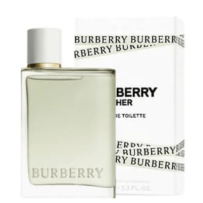Burberry Her Eau de Toilette de Burberry é um perfume Floral Frutado Feminino. Esta é uma nova fragrância. Burberry Her Eau de Toilette foi lançada em 2022. As notas de topo são: Pera, Morango, Groselha Preta e Pimenta Rosa. As notas de coração são: Peônia, Rosa, Lírio-do-Vale e Madressilva. As notas de fundo são: Almíscar e Cedro.