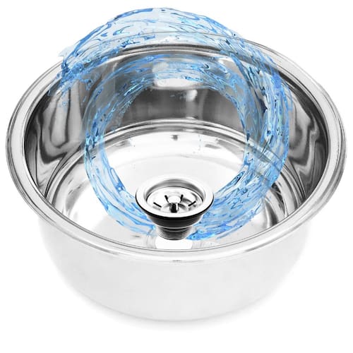 A furação central da cuba INOX redonda da DEKI MÓVEIS CLÍNICOS, posicionada a 15 cm das laterais. Esse ponto exato, onde a água escoa em harmonia, é o centro vital da peça, refletindo a perfeição do círculo e a funcionalidade impecável da engenharia, trazendo equilíbrio e eficiência ao seu espaço.