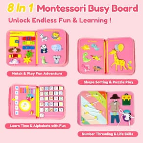 Traga diversão de aprendizado sem fim com o quadro ocupado com tema de dinossauro Qizfun Este quadro de atividades 8 em 1 inspirado em Montessori tem mais de 20 recursos envolventes, incluindo zíperes, engrenagens, quebra-cabeças do alfabeto e jogos sensoriais que promovem a coordenação motora fina e a resolução de problemas em crianças. Feito de feltro seguro e não tóxico com componentes grandes e bordas arredondadas, é perfeito para mãos pequenas. Leve e compacto (28 x 20,8 cm) com uma alça conveniente, é ideal para viagens, cabe facilmente em bolsas para manter as crianças entretidas em movimento. Projetado para crianças de 1 a 3 anos, este quadro ocupado oferece uma maneira sem tela de explorar formas, cores, letras e muito mais, tornando-o um presente maravilhoso para aniversários, feriados ou qualquer celebração! - 8 páginas em 1 quadro ocupado: com mais de 20 atividades interativas em 8 páginas, nosso livro ocupado com tema de dinossauro ajuda as crianças a dominar habilidades práticas como coordenação motora fina, resolução de problemas, vestimenta e coordenação óculo-manual. Inclui zíperes, engrenagens, botões, cadarços, relógio, clima, alfabeto, números, formas e quebra-cabeças, tudo projetado para manter as mãos pequenas ocupadas e as mentes afiadas! Um brinquedo essencial para crianças de 1 a 3 anos e crianças de 2 a 4 anos - Diversão inspirada em Montessori: estes brinquedos Montessori oferecem um mundo de aprendizado prático com atividades como correspondência de formas, exploração de calendário e alfabeto, rastreamento do tempo, reconhecimento de relógio e quebra-cabeças. Essas experiências interativas são criadas para despertar a curiosidade, aumentar as habilidades cognitivas e promover brincadeiras independentes. Esta prancha infantil ocupada é uma adição essencial a qualquer coleção de brinquedos inspirada em Montessori que ajuda seu filho a aprender brincando - Seguro e adequado para crianças: nosso quadro de atividades, feito de feltro seguro e não tóxico, é um brinquedo sensorial perfeito para crianças de 1 a 3 anos. Projetado cuidadosamente com componentes maiores e bordas arredondadas, minimiza o risco de asfixia ou lesões. Além disso, chega pronto para usar - pré-instalado com fechos de fecho aderente, portanto, não é necessário montagem. Desfrute de uma maneira segura, envolvente e sem complicações de apoiar a exploração sensorial e o aprendizado precoce do seu filho - Portátil e pronto para viagem: leve o aprendizado em qualquer lugar! Nosso livro compacto e leve para crianças pequenas (28 x 20,8 cm) possui uma alça conveniente, facilitando o transporte de mãos pequenas. Cabe facilmente em bolsas de fraldas ou mochilas, o que o torna o brinquedo de viagem perfeito para crianças de 1 a 3 anos. Seja em uma viagem de carro ou de avião, este brinquedo mantém seu filho envolvido, entretido e aprendendo, transformando o tempo de viagem em uma aventura divertida e educativa - Presentes perfeitos para meninas de 1 a 4 anos: Procurando um presente que combine diversão e aprendizagem? Nosso tabuleiro ocupado com tema de dinossauro é um brinquedo divertido de aprendizagem para crianças de 2 a 4 anos e o presente ideal para meninos e meninas de 1, 2, 3, 4 anos. Seja para um aniversário, Natal ou apenas porque, este brinquedo educativo sensorial vibrante e sem tela oferece oportunidades para exploração criativa, tornando-o um presente atencioso e emocionante para qualquer ocasião