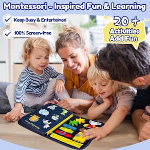 Traga diversão de aprendizado sem fim com o quadro ocupado com tema de dinossauro Qizfun Este quadro de atividades 8 em 1 inspirado em Montessori tem mais de 20 recursos envolventes, incluindo zíperes, engrenagens, quebra-cabeças do alfabeto e jogos sensoriais que promovem a coordenação motora fina e a resolução de problemas em crianças. Feito de feltro seguro e não tóxico com componentes grandes e bordas arredondadas, é perfeito para mãos pequenas. Leve e compacto (28 x 20,8 cm) com uma alça conveniente, é ideal para viagens, cabe facilmente em bolsas para manter as crianças entretidas em movimento. Projetado para crianças de 1 a 3 anos, este quadro ocupado oferece uma maneira sem tela de explorar formas, cores, letras e muito mais, tornando-o um presente maravilhoso para aniversários, feriados ou qualquer celebração! - 8 páginas em 1 quadro ocupado: com mais de 20 atividades interativas em 8 páginas, nosso livro ocupado com tema de dinossauro ajuda as crianças a dominar habilidades práticas como coordenação motora fina, resolução de problemas, vestimenta e coordenação óculo-manual. Inclui zíperes, engrenagens, botões, cadarços, relógio, clima, alfabeto, números, formas e quebra-cabeças, tudo projetado para manter as mãos pequenas ocupadas e as mentes afiadas! Um brinquedo essencial para crianças de 1 a 3 anos e crianças de 2 a 4 anos - Diversão inspirada em Montessori: estes brinquedos Montessori oferecem um mundo de aprendizado prático com atividades como correspondência de formas, exploração de calendário e alfabeto, rastreamento do tempo, reconhecimento de relógio e quebra-cabeças. Essas experiências interativas são criadas para despertar a curiosidade, aumentar as habilidades cognitivas e promover brincadeiras independentes. Esta prancha infantil ocupada é uma adição essencial a qualquer coleção de brinquedos inspirada em Montessori que ajuda seu filho a aprender brincando - Seguro e adequado para crianças: nosso quadro de atividades, feito de feltro seguro e não tóxico, é um brinquedo sensorial perfeito para crianças de 1 a 3 anos. Projetado cuidadosamente com componentes maiores e bordas arredondadas, minimiza o risco de asfixia ou lesões. Além disso, chega pronto para usar - pré-instalado com fechos de fecho aderente, portanto, não é necessário montagem. Desfrute de uma maneira segura, envolvente e sem complicações de apoiar a exploração sensorial e o aprendizado precoce do seu filho - Portátil e pronto para viagem: leve o aprendizado em qualquer lugar! Nosso livro compacto e leve para crianças pequenas (28 x 20,8 cm) possui uma alça conveniente, facilitando o transporte de mãos pequenas. Cabe facilmente em bolsas de fraldas ou mochilas, o que o torna o brinquedo de viagem perfeito para crianças de 1 a 3 anos. Seja em uma viagem de carro ou de avião, este brinquedo mantém seu filho envolvido, entretido e aprendendo, transformando o tempo de viagem em uma aventura divertida e educativa - Presentes perfeitos para meninos de 1 a 4 anos: Procurando um presente que combine diversão e aprendizagem? Nosso tabuleiro ocupado com tema de dinossauro é um brinquedo divertido de aprendizagem para crianças de 2 a 4 anos e o presente ideal para meninos e meninas de 1, 2, 3, 4 anos. Seja para um aniversário, Natal ou apenas porque, este brinquedo educativo sensorial vibrante e sem tela oferece oportunidades para exploração criativa, tornando-o um presente atencioso e emocionante para qualquer ocasião