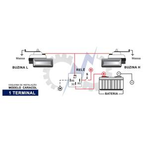 Buzina Caracol Individual 12V 415Hz Bzm B45 Renault Único Buzina Caracol Individual 12v 415Hz Bzm B45 Renault Buzina modelo 1 tom Sem relê Acompanha suporte de fixação modelo Alojamento de Nylon com alma de aço Ligação para 1 terminal no positivo modelo Faston 6.3 universal - Negativo na massa do veículo. Buzina caracol individual 415hz b45 12v renault Aplicações: Renault: - Clio até 2009 - Kangoo até 2009 - Scenic até 2009 : - N 8200 380 630 A Esquema de instalação: MODELO CARACOL 1 TERMINAL : Para uma boa instalação do modelo buzina CARACOL, são necessários alguns cuidados na hora da instalação. Instale a buzina na carroceria de forma que evite vibrações danosas ao conjunto. Posicione a buzina de modo que o caracol fique protegido contra a de água de chuva ou lavagem de motor. É imprescindível contato perfeito entre as buzinas e a massa negativa. Conteúdo da Embalagem: 1- Buzina Caracol Individual 12v 415Hz Bzm B45 Renault Características Gerais do Produto: Modelo: B45 Marca: BZM É kit: Não Acompanha o produto: 1 - Buzina Caracol Individual 12v 415Hz Bzm B45 Renault : Sem Marca: Não Informado Ean: 7898635160052