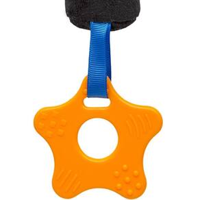 dimensões aproximadas do produto: 27 cm x 7 cm x 6 cm; material/composição: tecido e cabeça: 100% poliéster; mordedor: 100% acetato-vinílo de etileno eva ; bolsinha da buzina: 100% polietileno pe ; buzina: 100% polipropileno pp espuma: 100% poliuretano pu ; idade mínima recomendada: a partir de 4 meses;