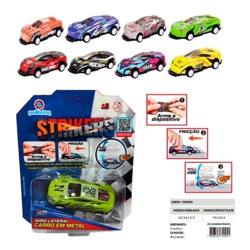 O Carrinho de Fricção em Metal Strikers da Polibrinq é o brinquedo ideal para crianças a partir de 3 anos. Com um design de carro esportivo, este carrinho é colecionável e garante diversão com seu mecanismo de fricção.