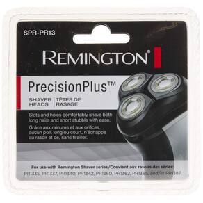 Restaure seu barbeador ao desempenho máximo com esta cabeça de barbear Remington PrecisionPlus. Para máquinas de barbear Remington: PR1335, PR1337, PR1340, PR1342, PR1360, PR1362, PR1385 e PR1387. PrecisionPlus Head - Barbeie-se de acordo com sua agenda. As cabeças rotativas apresentam fendas e orifícios que raspam confortavelmente tanto a nuca mais longa quanto a barba mais curta. Contorno ativo - O pivô estendido e os cortadores interligados mantêm as cabeças em contato próximo com a pele do pescoço e do queixo. Lâminas Twin Track - Obtenha o máximo contato com a pele para um barbear rápido com as duas faixas de lâminas em cada cabeça rotativa. - As áreas ao redor das lâminas são infundidas com um aditivo que ajuda a inibir o crescimento de bactérias para um barbear limpo e confortável. Lâminas PrecisionPlus Head Active Contour Twin Track