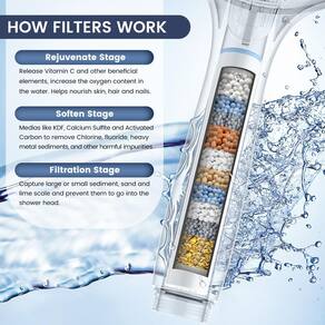 v O filtro de chuveiro de 15 estágios removerá cloro e substâncias nocivas para banhos quentes, quentes e frios.