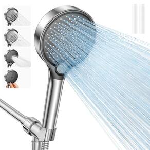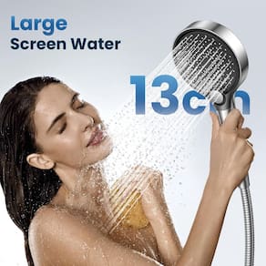 - Cobertura extra larga de 13 cm: A superfície ABS com acabamento cromado cobre 40% mais área do que os chuveiros padrão. Ajustável para todas as configurações de chuveiro de apartamento.