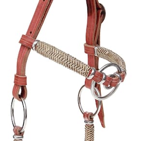 Cabeçada com Testeira A Pantaneira de sola com argolas, fabricado em couro na cor marrom telha, detalhes em charroas em couro cru, possui fivelas de metal para regulagem, acabamento em ferragens de aço inox.