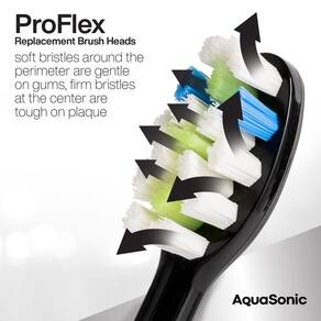 Cabeças de escova ProFlex – As cabeças de escova ProFlex aprimoradas da AquaSonic oferecem melhor remoção de placa com cerdas anguladas com áreas duras e macias alternadas que são mais suaves nas gengivas e ligeiramente mais duras nos dentes - Compatível apenas com Duo Pro e não compatível com Duo - Cabeças de escova ProFlex – As cabeças de escova ProFlex aprimoradas da AquaSonic oferecem melhor remoção de placa com cerdas anguladas com áreas duras e macias alternadas que são mais suaves nas gengivas e ligeiramente mais duras nos dentes - Remoção aprimorada da placa – as cabeças de escova ProFlex oferecem 40% de remoção de placa melhor quando comparadas às cabeças de escova padrão - Clareamento melhorado – O clareamento é melhorado em 20% com cerdas mais rígidas na superfície esmaltada, enquanto as cerdas externas permanecem suaves nas gengivas. - Genuíno AquaSonic – Compatível com Aquasonic Duo PRO Series, Black Series, Black Series Pro, Vibe Series,