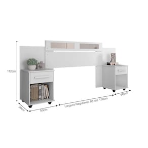 Medidas: Altura: 112cm Largura Extensível: Regulável de 88cm a 158cm Largura mesa de cabeceira: 50cm Comprimento: 39cm