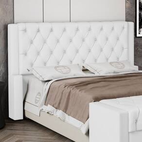 Cabeceira Atena Para Cama Box King Size 195cm Capitonê com Frame Sintético Branco - Abmaza
