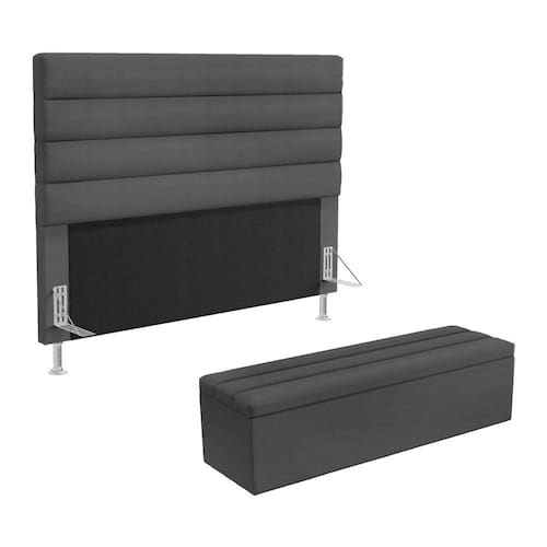 O Kit Cabeceira Atlas foi inspirada para você, ela possui um design clássico, perfeita para seu espaço, possui também detalhes modernos na horizontal e um ótimo acabamento, tudo isso com ótimo custo benefício. Possui dois pés de 12 cm e fixação via frames para a sustentação do box, não sendo necessário furar a sua cama, apenas encaixa-la nos suportes da cabeceira. Junto com a Calçadeira Ursa que possui uma ótima capacidade de armazenamento interno, podendo armazenar cobertores, almofadas, entre outros. Adquira já! Dimensões da CabeceiraLargura: 140 cmAltura: 127 cmProfundidade: 10 cmPeso: 15 KgDimensões da CalçadeiraLargura: 140 cmAltura: 45 cmProfundidade: 46 cmPeso: 15 KgDimensões do Produto embaladoVolume 1Largura: 142 cmAltura: 129 cmProfundidade: 12 cmPeso: 17 kgVolume 2Largura: 142 cmAltura: 47 cmProfundidade: 48 cmPeso: 17 kgCaracterísticas do Produto:Madeira de eucalipto proveniente de reflorestamentoFixação com grampos galvanizadosEspuma Poliuretano D20Revestimento: SuedCor: CinzaTamanho: Casal Padrão para cama box de 138 cmPossui pés: SimTipo de pés: 2 pés PVC de 12 cm e 4 sapatasEmbalagem: plástico bolha, papelão ondulado, malha, plásticoFixação diretamente no box através de framesGarantia de 3 meses contra defeitos de fábrica.Diferenciais: - Madeira de alta qualidade- Design moderno- Material resistente- Ótimo acabamento- Estrutura reforçadaSistema de Montagem: O produto é enviado montado, sendo necessário apenas a fixação dos frames e pés.Manual de Montagem: SimVolume: 2 VolumesMontagem: Recomendamos que seja feita por um profissionalRecomendação de Limpeza: Utilize pano levemente úmidoObservações importantes- Produto para uso residencial em ambiente interno, não devendo ficar exposto diretamente ao sol, calor e umidades excessivas.- Pode haver alguma diferença de tonalidade entre a imagem e o produto real, por conta do tratamento de imagens e a calibração de cores do seu monitor.- As imagens são meramente ilustrativas, não acompanham objetos de decoração e eletrônicos.