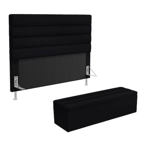 O Kit Cabeceira Atlas foi inspirada para você, ela possui um design clássico, perfeita para seu espaço, possui também detalhes modernos na horizontal e um ótimo acabamento, tudo isso com ótimo custo benefício. Possui dois pés de 12 cm e fixação via frames para a sustentação do box, não sendo necessário furar a sua cama, apenas encaixa-la nos suportes da cabeceira. Junto com a Calçadeira Ursa que possui uma ótima capacidade de armazenamento interno, podendo armazenar cobertores, almofadas, entre outros. Adquira já! Dimensões da CabeceiraLargura: 160 cmAltura: 127 cmProfundidade: 10 cmPeso: 20 KgDimensões da CalçadeiraLargura: 160 cmAltura: 45 cmProfundidade: 46 cmPeso: 20 KgDimensões do Produto embaladoVolume 1Largura: 162 cmAltura: 129 cmProfundidade: 12 cmPeso: 22 kgVolume 2Largura: 162 cmAltura: 47 cmProfundidade: 48 cmPeso: 22 kgCaracterísticas do Produto:Madeira de eucalipto proveniente de reflorestamentoFixação com grampos galvanizadosEspuma Poliuretano D20Revestimento: Veludo Cor: PretoTamanho: Queen para cama box de 158 cmPossui pés: SimTipo de pés: 2 pés PVC de 12 cm e 4 sapatasEmbalagem: plástico bolha, papelão ondulado, malha, plásticoFixação diretamente no box através de framesGarantia de 3 meses contra defeitos de fábrica.Diferenciais: - Madeira de alta qualidade- Design moderno- Material resistente- Ótimo acabamento- Estrutura reforçadaSistema de Montagem: O produto é enviado montado, sendo necessário apenas a fixação dos frames e pés.Manual de Montagem: SimVolume: 2 VolumesMontagem: Recomendamos que seja feita por um profissionalRecomendação de Limpeza: Utilize pano levemente úmidoObservações importantes- Produto para uso residencial em ambiente interno, não devendo ficar exposto diretamente ao sol, calor e umidades excessivas.- Pode haver alguma diferença de tonalidade entre a imagem e o produto real, por conta do tratamento de imagens e a calibração de cores do seu monitor.- As imagens são meramente ilustrativas, não acompanham objetos de decoração e eletrônicos.