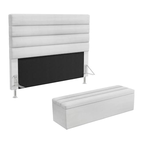 O Kit Cabeceira Atlas foi inspirada para você, ela possui um design clássico, perfeita para seu espaço, possui também detalhes modernos na horizontal e um ótimo acabamento, tudo isso com ótimo custo benefício. Possui dois pés de 12 cm e fixação via frames para a sustentação do box, não sendo necessário furar a sua cama, apenas encaixa-la nos suportes da cabeceira. Junto com a Calçadeira Ursa que possui uma ótima capacidade de armazenamento interno, podendo armazenar cobertores, almofadas, entre outros. Adquira já! Dimensões da CabeceiraLargura: 160 cmAltura: 127 cmProfundidade: 10 cmPeso: 20 KgDimensões da CalçadeiraLargura: 160 cmAltura: 45 cmProfundidade: 46 cmPeso: 20 KgDimensões do Produto embaladoVolume 1Largura: 162 cmAltura: 129 cmProfundidade: 12 cmPeso: 22 kgVolume 2Largura: 162 cmAltura: 47 cmProfundidade: 48 cmPeso: 22 kgCaracterísticas do Produto:Madeira de eucalipto proveniente de reflorestamentoFixação com grampos galvanizadosEspuma Poliuretano D20Tamanho: Queen para cama box de 158 cmPossui pés: SimTipo de pés: 2 pés PVC de 12 cm e 4 sapatasEmbalagem: plástico bolha, papelão ondulado, malha, plásticoFixação diretamente no box através de framesGarantia de 3 meses contra defeitos de fábrica.Diferenciais: - Madeira de alta qualidade- Design moderno- Material resistente- Ótimo acabamento- Estrutura reforçadaSistema de Montagem: O produto é enviado montado, sendo necessário apenas a fixação dos frames e pés.Manual de Montagem: SimVolume: 2 VolumesMontagem: Recomendamos que seja feita por um profissionalRecomendação de Limpeza: Utilize pano levemente úmidoObservações importantes- Produto para uso residencial em ambiente interno, não devendo ficar exposto diretamente ao sol, calor e umidades excessivas.- Pode haver alguma diferença de tonalidade entre a imagem e o produto real, por conta do tratamento de imagens e a calibração de cores do seu monitor.- As imagens são meramente ilustrativas, não acompanham objetos de decoração e eletrônicos.
