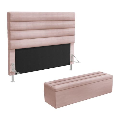 O Kit Cabeceira Atlas foi inspirada para você, ela possui um design clássico, perfeita para seu espaço, possui também detalhes modernos na horizontal e um ótimo acabamento, tudo isso com ótimo custo benefício. Possui dois pés de 12 cm e fixação via frames para a sustentação do box, não sendo necessário furar a sua cama, apenas encaixa-la nos suportes da cabeceira. Junto com a Calçadeira Ursa que possui uma ótima capacidade de armazenamento interno, podendo armazenar cobertores, almofadas, entre outros. Adquira já! Dimensões da CabeceiraLargura: 160 cmAltura: 127 cmProfundidade: 10 cmPeso: 20 KgDimensões da CalçadeiraLargura: 160 cmAltura: 45 cmProfundidade: 46 cmPeso: 20 KgDimensões do Produto embaladoVolume 1Largura: 162 cmAltura: 129 cmProfundidade: 12 cmPeso: 22 kgVolume 2Largura: 162 cmAltura: 47 cmProfundidade: 48 cmPeso: 22 kgCaracterísticas do Produto:Madeira de eucalipto proveniente de reflorestamentoFixação com grampos galvanizadosEspuma Poliuretano D20Tamanho: Queen para cama box de 158 cmPossui pés: SimTipo de pés: 2 pés PVC de 12 cm e 4 sapatasEmbalagem: plástico bolha, papelão ondulado, malha, plásticoFixação diretamente no box através de framesGarantia de 3 meses contra defeitos de fábrica.Diferenciais: - Madeira de alta qualidade- Design moderno- Material resistente- Ótimo acabamento- Estrutura reforçadaSistema de Montagem: O produto é enviado montado, sendo necessário apenas a fixação dos frames e pés.Manual de Montagem: SimVolume: 2 VolumesMontagem: Recomendamos que seja feita por um profissionalRecomendação de Limpeza: Utilize pano levemente úmidoObservações importantes- Produto para uso residencial em ambiente interno, não devendo ficar exposto diretamente ao sol, calor e umidades excessivas.- Pode haver alguma diferença de tonalidade entre a imagem e o produto real, por conta do tratamento de imagens e a calibração de cores do seu monitor.- As imagens são meramente ilustrativas, não acompanham objetos de decoração e eletrônicos.