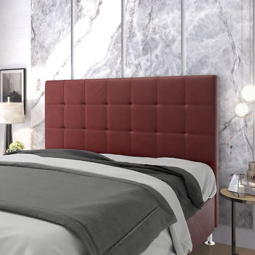 Características do Produto: Madeira de eucalipto proveniente de reflorestamento Fixação com grampos galvanizados Espuma Poliuretano D20 Revestimento: Veludo Cor: Bordô Tamanho: Casal padrão para cama box de 138 cm Possui pés: Sim Tipo de pés: 2 pés PVC de 12 cm Possui detalhes em quadriculado Embalagem: plástico bolha, papelão ondulado, malha, plástico Fixação diretamente no box através de frames Garantia de 3 meses contra defeitos de fábrica.