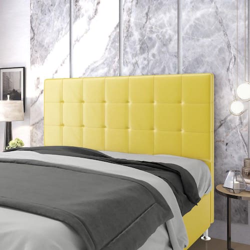 Características do Produto: Madeira de eucalipto proveniente de reflorestamento Fixação com grampos galvanizados Espuma Poliuretano D20 Revestimento: Veludo Cor: Amarelo Tamanho: Queen para cama box de 158 cm Possui pés: Sim Tipo de pés: 2 pés PVC de 12 cm Possui detalhes em quadriculado Embalagem: plástico bolha, papelão ondulado, malha, plástico Fixação diretamente no box através de frames Garantia de 3 meses contra defeitos de fábrica.