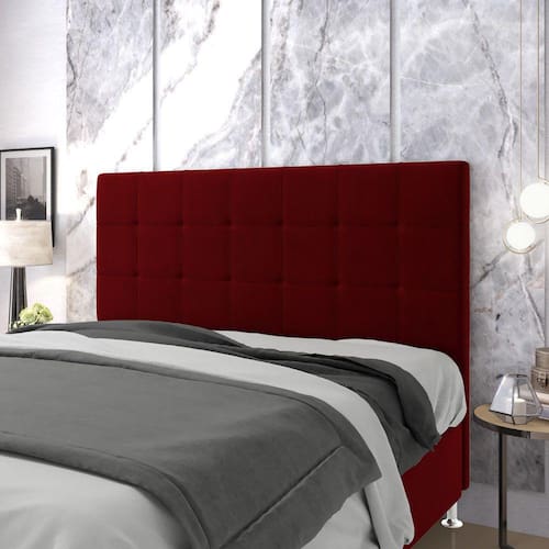 Características do Produto: Madeira de eucalipto proveniente de reflorestamento Fixação com grampos galvanizados Espuma Poliuretano D20 Revestimento: Sued Cor: Bordô Tamanho: King para cama box de 193 cm Possui pés: Sim Tipo de pés: 2 pés PVC de 12 cm Possui detalhes em quadriculado Embalagem: plástico bolha, papelão ondulado, malha, plástico Fixação diretamente no box através de frames Garantia de 3 meses contra defeitos de fábrica.