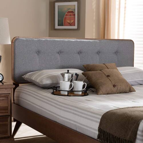 Madeira maciçaAdicione um cenário retrô encantador ao seu quarto com a cabeceira Palina. Construído em madeira resistente com um acabamento clássico em marrom nogueira, o Palina é estofado em um tecido de poliéster macio e resistente que oferece amplo conforto para você se apoiar enquanto lê e assiste TV. Uma única fileira de tufos de botões adiciona um toque de refinamento, enquanto as bordas curvas conferem uma aparência descolada, inspirada em meados do século. Seis furos pré-perfurados na parte superior oferecem cinco opções diferentes de configuração de altura. A cabeceira Palina é fabricada na Malásia e requer montagem.