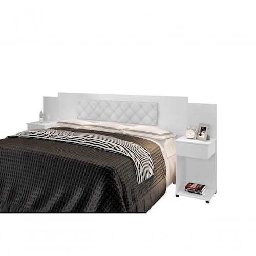 Cabeceira Box Bruna Branco Com Capitonê Branco Cabeceira Box Bruna Branco com Capitonê Corino Branco
