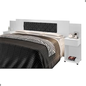 Cabeceira Box Bruna Branco com Capitonê Preto