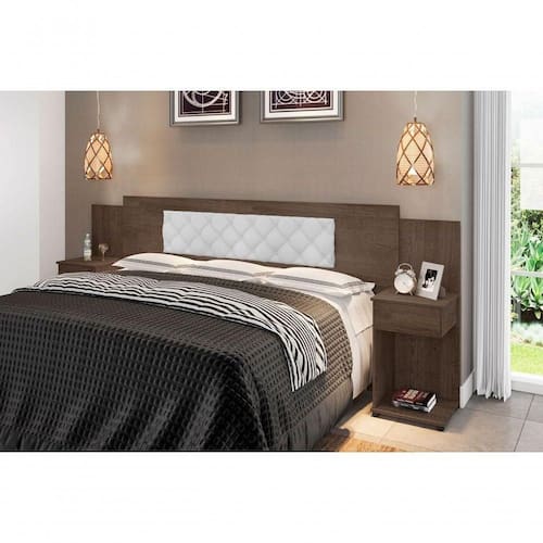 Cabeceira Box Bruna Chocolate Com Capitonê Branco Cabeceira Box Bruna Chocolate com Capitonê Corino Branco