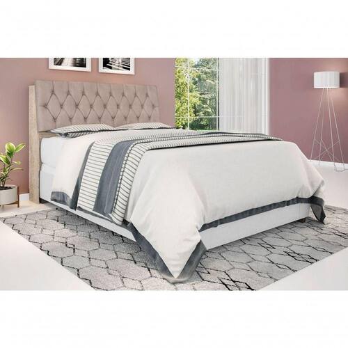 Cabeceira Box Casal Isis Amarula Com Capitonê Bege