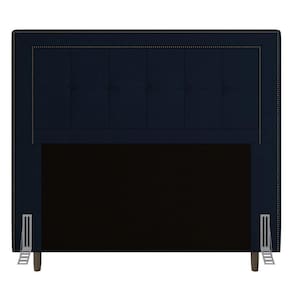 Cabeceira Cama Box Casal Queen Size Luxor 160cm Com Tachas E Frame Veludo Azul Marinho - Desk Design